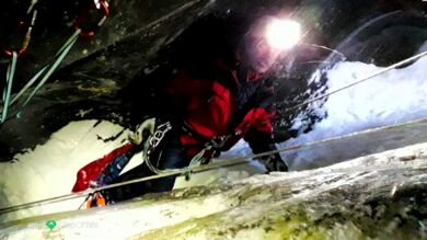 Imágenes reales del intento de rescate del esquiador caído en una grieta de 40 metros de profundidad, el equivalente a un edificio de 13 pisos en el glaciar Kaprun. El joven practicaba 'freeride' junto a unos amigos cuando cayó al gigantesco agujero. Ha sucedido en Austria.