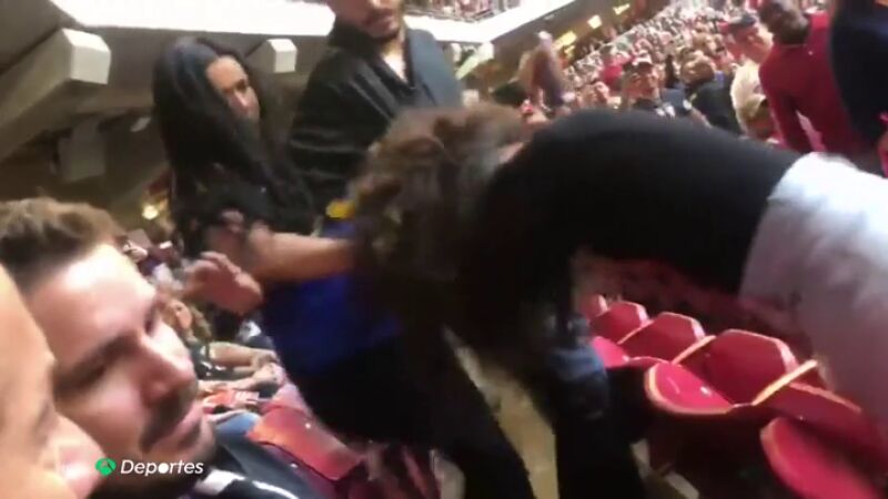 - Las dos aficionadas se enganchan del pelo y se golpean en varias ocasiones con las rodillas