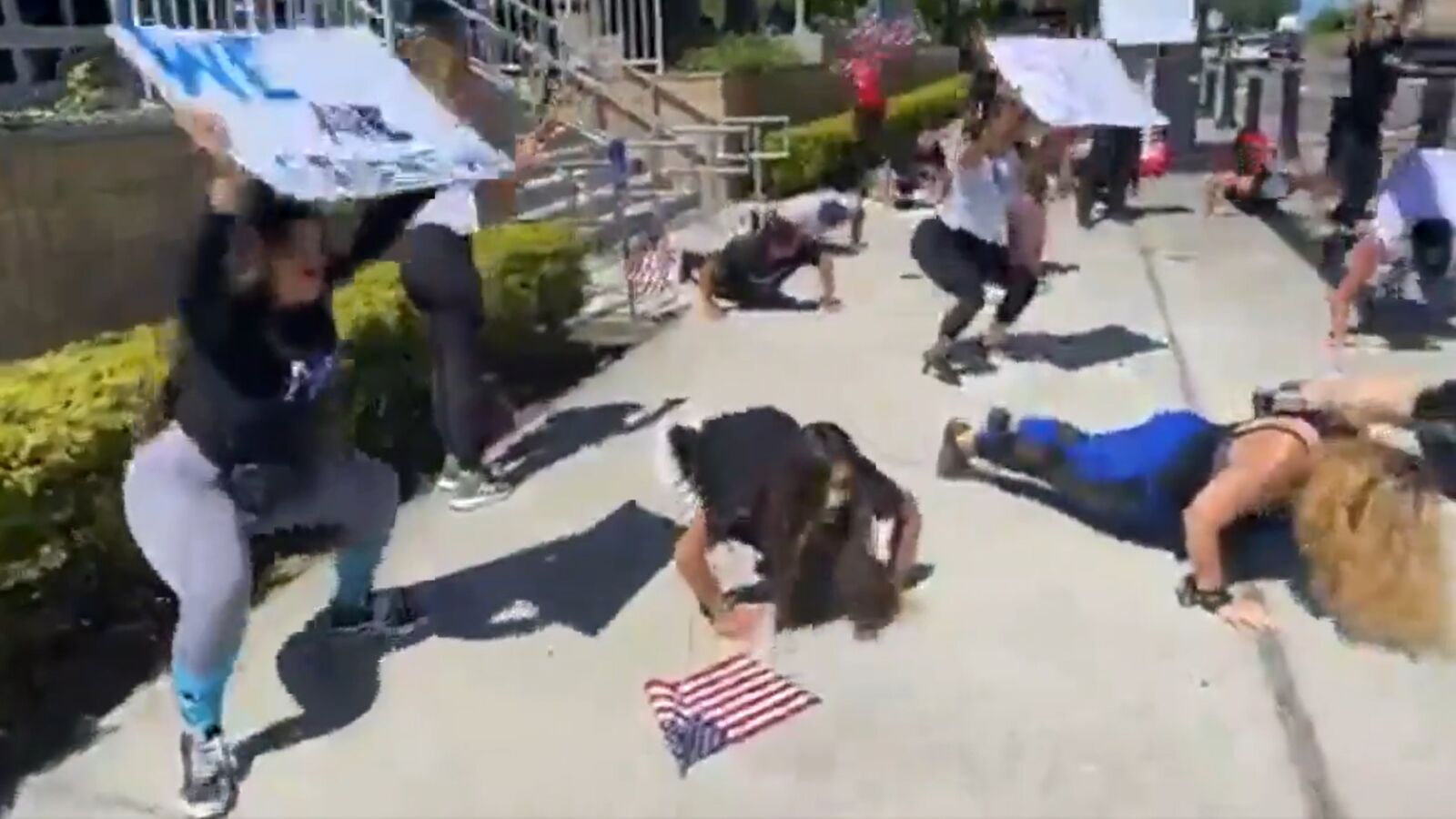 Manifestantes piden en Estados Unidos la reapertura de los gimnasios haciendo sentadillas y planchas