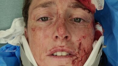 Tras una llamada desesperada a emergencias y un rápido traslado al hospital, llegó el diagnóstico: "Me fracturó el cóndilo occipital, que es la base del cráneo. Me comprimió las vértebras T3 y T4. También me fracturó el esternón. Es cómo si el coche me hubiera aplastado", explica Matthews, que también tenía media cara destrozada por las heridas.