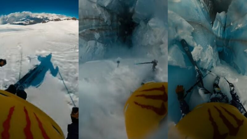 El momento en que un esquiador cae por una grieta en un glaciar y logra sobrevivir de forma milagrosa