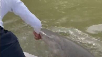 En la grabación se aprecia como el pescador, que no se había protegido las manos con ningún tipo de guante, introdujo parte del brazo en el agua y enseguida apareció el escualo para morderle y tirarle de inmediato al agua.