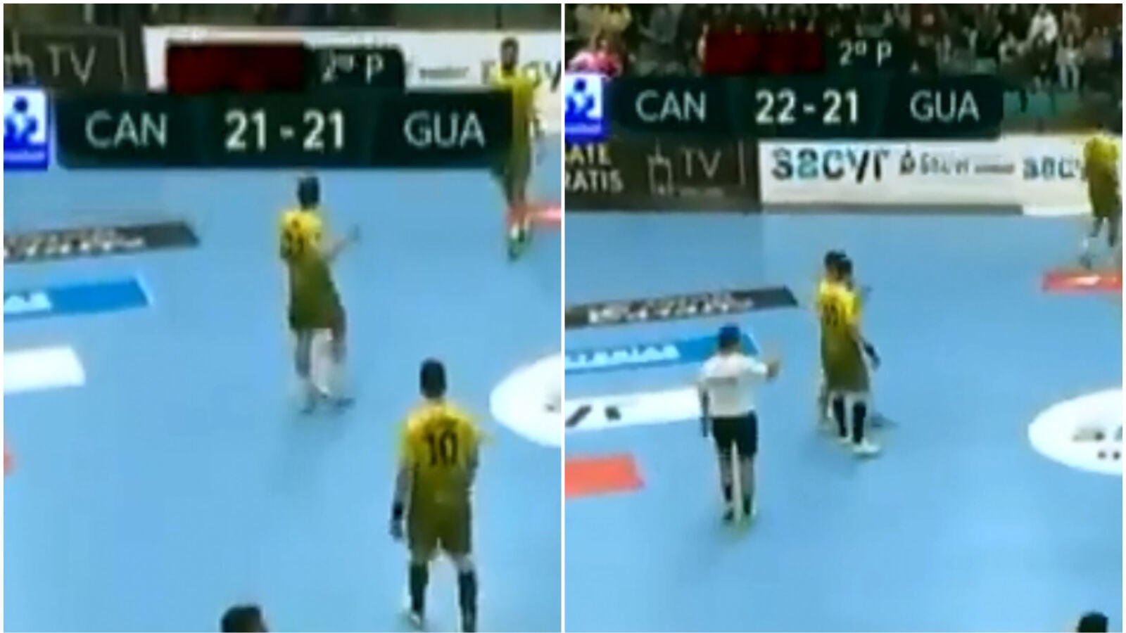 La acción que reclama el Guadalajara sucede cuando el jugador del Cangas Valiantsin Kuran marca gol, se hace daño en el tobillo y le ayudan a salir de la pista, y mientras el juego está parado es cuando la mesa concede un gol de más al equipo gallego.