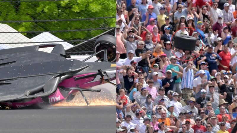 Los aficionados al motor que acudieron a las 500 millas de Indianápolis llegaban con ganas de disfrutar de una de las mejores carreras del mundo, pero no esperaban vivir un momento de pánico como el que le tocó presenciar a un grupo de ellos. A falta de 14 vueltas para el final de la carrera, un accidente entre Felix Rosenqvist y Kyle Kirkwood hizo que el neumático del segundo saliese volando sobrepasando por encima la alta valla que separa la pista de la tribuna desde la que los aficionados disfrutan del evento.