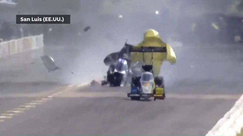 Un milagro es algo parecido a esto. El bólido alcanza los 420 kilómetros por hora. Parece que va a salir volando, pero lo que sucede es que se desintegra y se parte en dos.