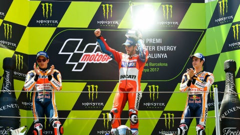 El italiano Andrea Dovizioso (Ducati Desmosedici GP17) amargó la fiesta completa de la representación española al adjudicarse la victoria en el Gran Premio de Cataluña de MotoGP en el circuito de Barcelona, después de que Alex Márquez (Kalex) y Joan Mir (Honda), venciesen en sus respectivas categorías. Dovizioso logró su segunda victoria consecutiva de la temporada, tras la conseguida la pasada semana en Mugello (Italia), por delante de los españoles Marc Márquez y Dani Pedrosa, ambos del equipo Repsol Honda.