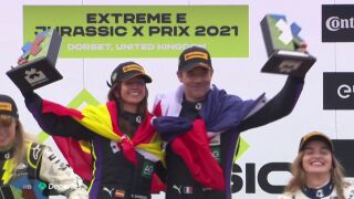 La española Cristina Gutiérrez y Sebastien Loeb, se alzaron con la victoria en la última prueba del campeonato de Extreme E que se ha disputado en Dorset, Inglaterra. Antena 3 Deportes ha hablado con ella.