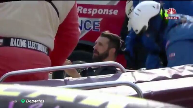 Vaya susto se llevó Zach Price, uno de los mecánicos del piloto Ryan Blaney (Penske Ford), en mitad del pit-lane de una carrera de la Nascar. Y es que quedó atrapado entre dos coches. Una situación de la que, por suerte, sólo salió con una lesión en la pierna.