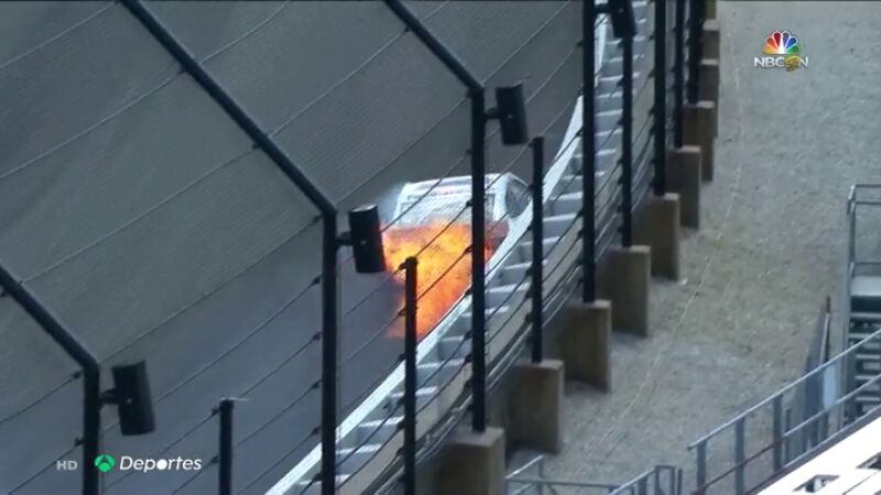 El coche del americano Denny Hamlin se chocó contra el muro y empezó a arder. El piloto enseguida detuvo su vehículo pero no conseguía salir.