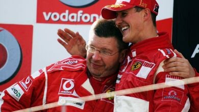 Michael Schumacher y Ross Brawn se abrazan en su etapa en Ferrari
