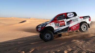 Carlos Sainz sufre en la etapa 8 pero sigue líder a 6:40s a Nasser Al-Attiyah. Fernando Alonso se queda a las puertas de un histórico triunfo: acaba a solo 4 segundos de Serradori.
