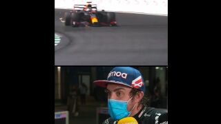 Fernando Alonso estaba dando una rueda de prensa mientras Verstappen rozó con los muros y se quedó sin una pole que tenía asegurada. Parece que le dolió mas al asturiano que a algunos fans del holandés.
