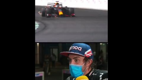 Alonso estaba dando una rueda de prensa y no dejó de poner caras de asombro al ver al holandés volar por la pista y rozar los muros, el de Red Bull estaba arriesgando y Alonso lo vio enseguida. Cuando Max se chocó contra la pared el asturiano se alejó unos metros con una cara de decepción y llegó a hacer hasta una mueca. Claro está cuál es el favorito de Magic Fernando.