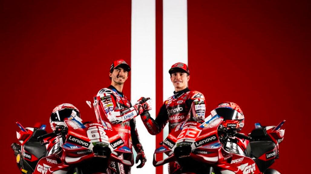Bagnaia y Márquez fueron los encargados de retirar la lona y mostrar al mundo la nueva decoración, que incorpora además tecnología de inteligencia artificial de Lenovo, socio tecnológico del equipo. El español valoró positivamente el diseño y puso el foco en el rendimiento: "Una moto veloz, es una moto buena. Esa es la clave. Veremos durante la pretemporada, pero el diseño es muy bonito. Intentaremos rendir lo mejor posible para poder celebrar el centenario de Ducati como se merece".