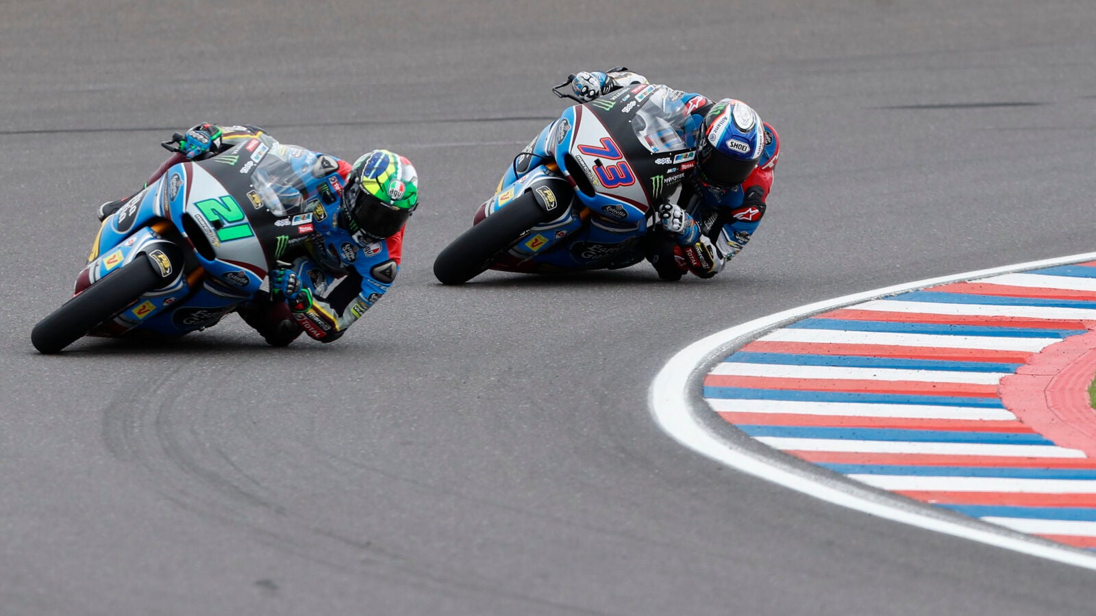 La dupla de Estrella Galicia 0,0 Marc VDS confirmó sus altas aspiraciones en el campeonato, con el dominio que ejercen ya desde la pretemporada. La KTM, con su primera pole en su llegada a Moto2, de Oliveira no pudo aguantar el ritmo en cabeza, pero se vio beneficiado por la caída del español terminando segundo.