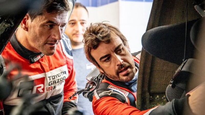 Las primeras palabras de Fernando Alonso tras debutar en el rally de Marruecos: "Pinchamos tres veces y sólo teníamos dos repuestos”