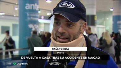 Ha sobrevivido a uno de los circuitos más peligrosos del mundo. Raül Torras estaba deseando volver a casa tras el peor accidente de su vida. A su llegada al aeropuerto de Barcelona, no se le borra la sonrisa.