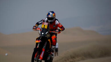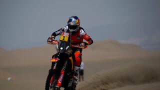 El hasta ahora líder del Dakar en Motos ha sufrido un accidente en la parte final de la etapa y ha sido evacuado de emergencia al campamento al padecer un traumatismo lumbar. Sunderlandcomandaba el Dakar en motos tras haber ganado la primera y tercera etapa. Adrien Van Beveren, nuevo líder en motos tras ganar la cuarta etapa.