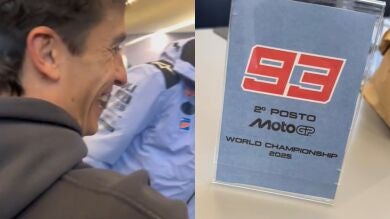 "¡Qué desgraciados, tío! Segundo puesto... Tranquilos, tranquilos", fue la reacción de Marc Márquez, quien se tomó con humor y entre risas la broma de su exequipo.