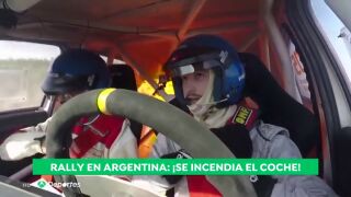 Un coche empieza a arder con los dos pilotos dentro en pleno rally en Argentina