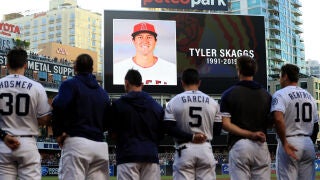"Con gran pena informamos que Tyler Skaggs falleció el día de hoy en Texas", afirma un comunicado de los Los Angeles Angels, "Tyler ha sido, y siempre será, una parte importante de la Familia de los Ángeles. Nuestros pensamientos y oraciones están con su esposa Carli y su familia durante este tiempo devastador".