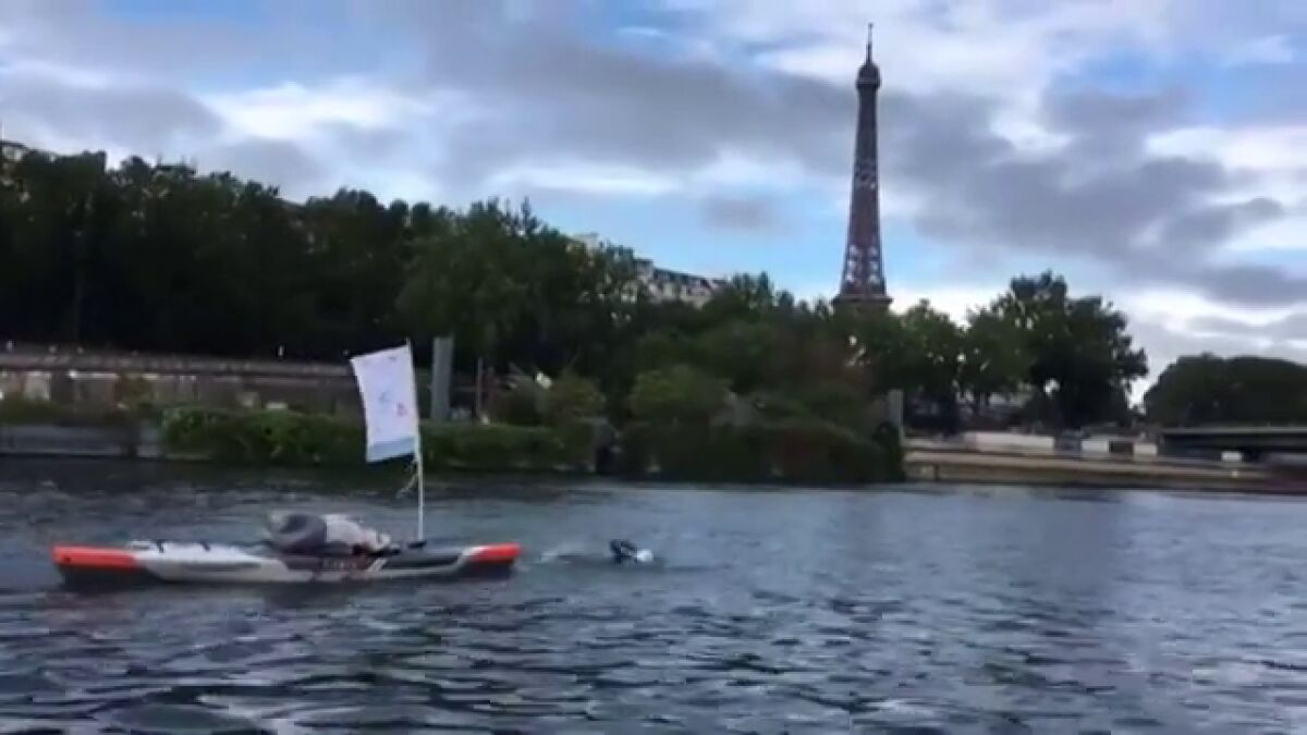 Su viaje le está regalando estampas tan bonitas como nadar por delante de la torre Eiffel y sobre todo el apoyo de la gente que le mira desde la distancia: "Es increíble, lloraba mientras nadaba", explica Arthur.