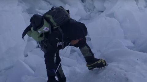 Alex Txikon tropezó en una de sus travesías y estuvo a punto de caer en una grieta sin fondo. A pesar del susto, el alpinista español siguió su camino hasta el campo 4, a 6.950 metros de altitud. "¡Menos mal que me quedé encajado con la mochila!", relata el propio Txikon.