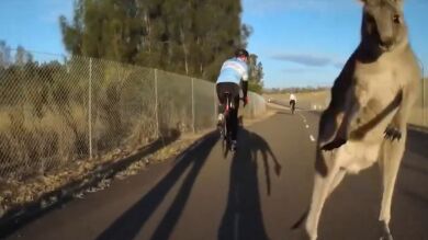 ¡Vaya susto! Un grupo de canguros ataca a unos ciclistas en una carretera de Australia