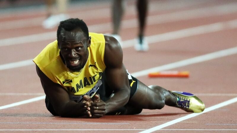 El jamaicano Usain Bolt, once veces campeón mundial y ocho olímpico, clausuró en Londres su carrera deportiva rodando por la pista lesionado en plena recta final cuando había recogido el testigo en tercer lugar en la final de relevos 4x100 metros. A media recta, Bolt se trastabilló y cayó al suelo entre gestos de dolor. Allí permaneció durante dos minutos, ocultando su cara con las manos, antes de incorporarse para entrar caminando en la meta.