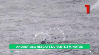 El surfista tuvo que aguantar tres minutos para que una Jet Ski pudiera rescatarlo. Un tiempo agónico y que se hizo eterno.