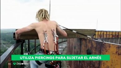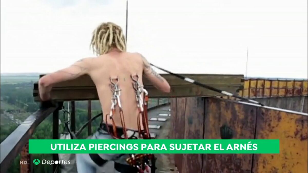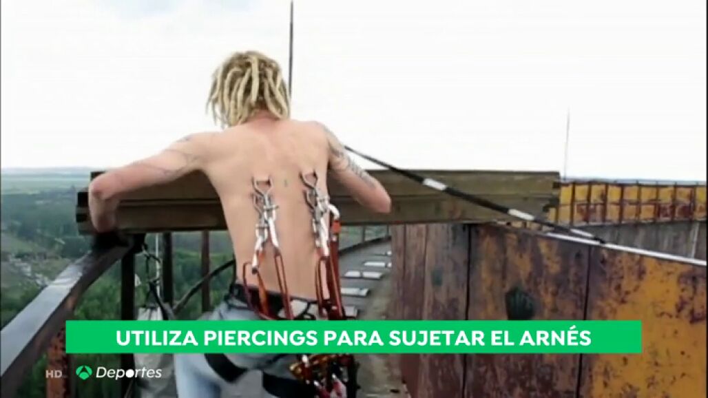 Eso sí, cuenta con un secreto: su espalda es su arnés. Es lo más extremo de lo extremo y este ruso es un especialista mundial en salto base en suspensión.