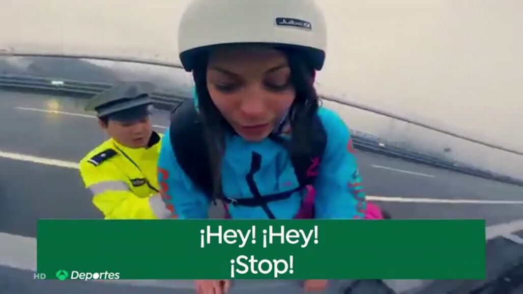 En Hunan, China, la rusa Otmashka Dubinina realizó un salto base desde el 'Aizhai', uno de los puentes más altos del mundo. Cerca de 350 metros de altura que no la echaron atrás... tampoco la policía china que trató sin éxito de evitar el espectacular salto base.