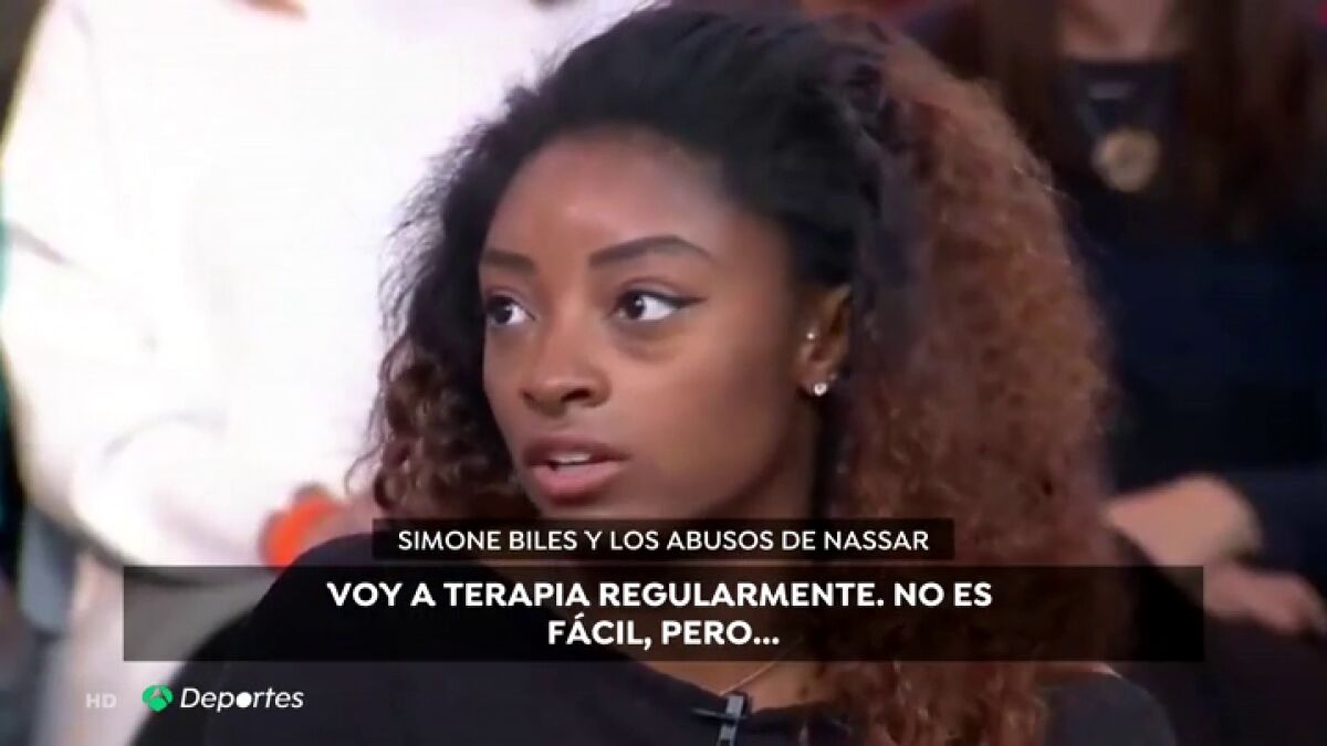 La periodista le pregunta por un año en el que cientos de mujeres, ella también, denunciaron los abusos de Nassar. Simone Biles revela su drama.
