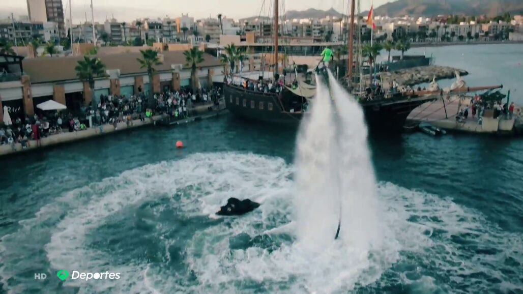 El puerto de Mazarrón, en Murcia, acogió este fin de semana la Copa del Rey de Flyski, un espectacular deporte acuático en el que los deportistas se elevan a 20 metros sobre el agua propulsados por un chorro de agua.
