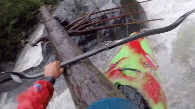 El kayak más extremo es muy peligroso... si no, que se lo digan al kayakista francés Raphael Urscheler. El galo se encontró en plena bajada con un tronco que le cortó el paso. Vivió entonces una situación realmente angustiosa, atrapado bajo el tronco y bajo la tremenda presión del agua.