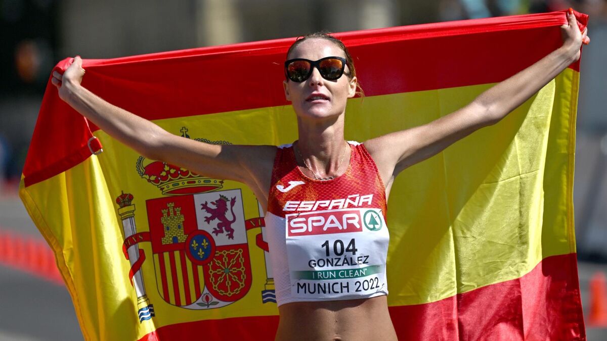 La marcha no falla en el equipo español. Tras el oro de Miguel Ángel López, Raquel González se ha subido al podio femenino para colocarse una medalla que supone su primer gran título internacional. Al cruzar la meta, la atleta se ha rodeado con la bandera de España y se ha llevado las manos a la cara y al cielo para celebrar la gran marca.
