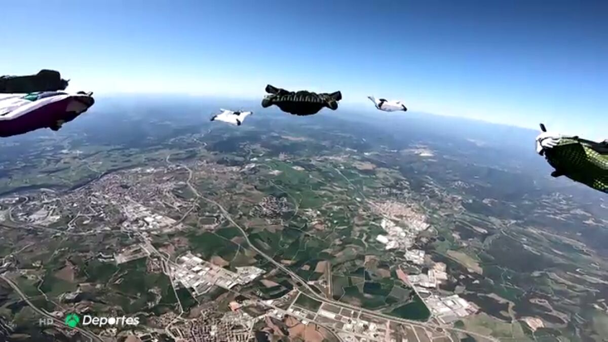 Nunca antes se había logrado esta imagen en España: récord de hombres pájaros al mismo tiempo haciendo una formación.