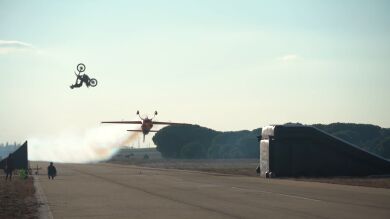¿Una moto haciendo un backflip por encima de una avioneta volando boca abajo? Una auténtica locura que Maikel Melero y Juan Velarde han protagonizado para un programa de Mega.