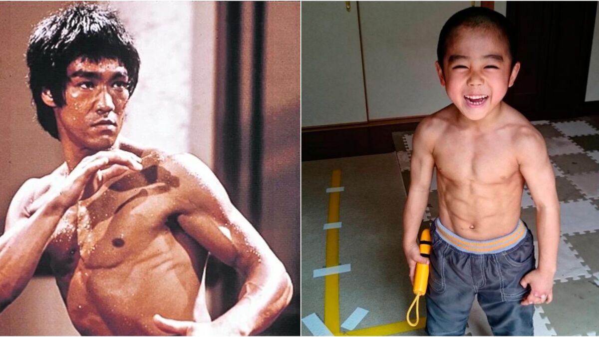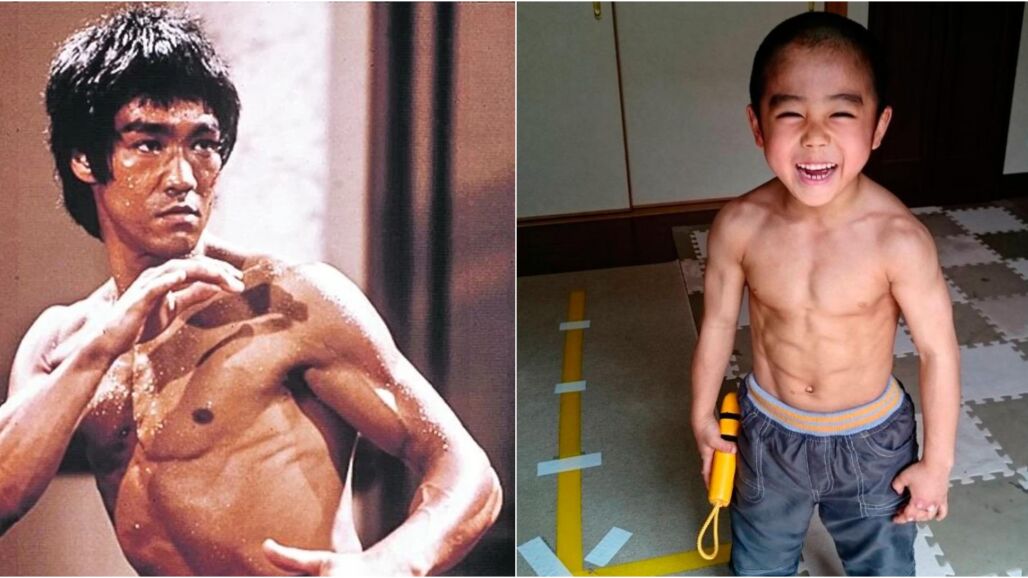 Los movimientos son exactamente iguales y solo tiene un truco: mucho entrenamiento. Flexiones a dos dedos, dominadas en el armario o incluso entrenamiento malparado en familia. Hace cosas imposibles para casi todos los humanos y su abdomen es impropio para su edad. Su padre y entrenador cuenta que el pequeño ya veía las películas de su ídolo Bruce con solo un año.