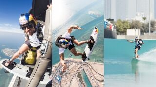 ¡Simplemente espectacular! Sebastián Álvarez, como se suele decir, se ha pasado el juego. Y es que el piloto y paracaidista chileno ha protagonizado una secuencia histórica y nunca antes vista en los deportes de acción. El lugar fue Abu Dhabi, donde Álvarez saltó desde un helicóptero a desde 3.657 metros con una tabla de surf atada a sus pies, sobrevolando la isla Hudayriyat.