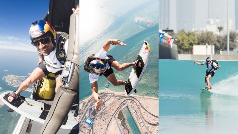 El piloto y paracaidista chileno ha dejado una secuencia que ya es historia de los deportes de acción. Sebastián Álvarez salta desde un helicóptero a 3.657 metros de altura y aterriza sobre una ola de 2,3 metros en las instalaciones de Surf de Abu Dhabi.