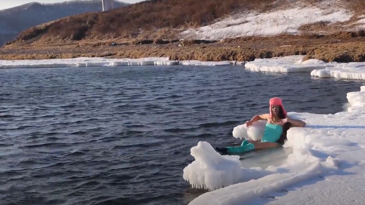 La 'Sirena de Hielo' que nada semidesnuda entre glaciares en Rusia
