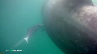 Alejandro cuenta el susto que se llevó al encontrarse con este tiburón de más de 8 metros cuando nadaba en la playa granadina de la Mamola.