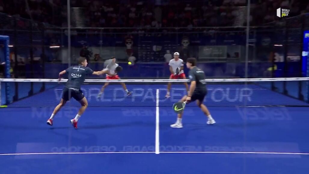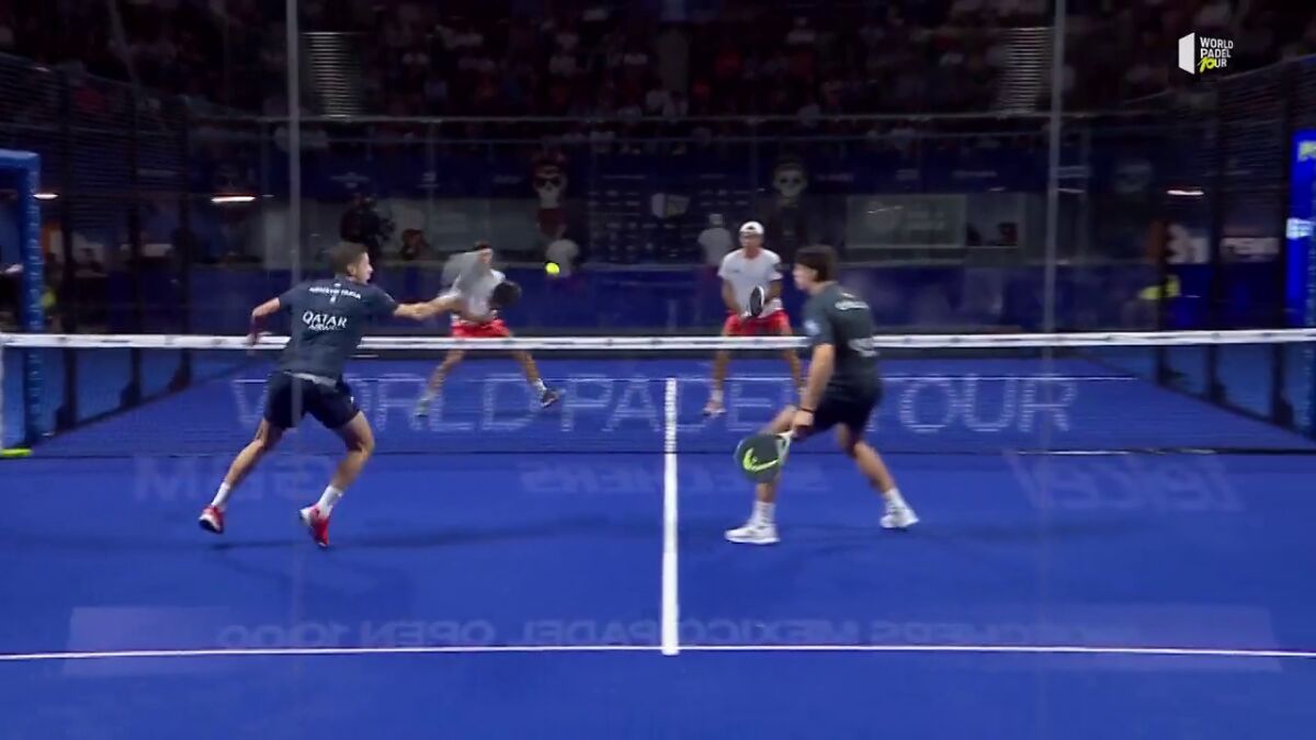 Agustín Tapia y Arturo Coello, recién coronados números 1 de la temporada con su victoria en semifinales, se medían en la finalísima del Mexico Padel Open a Tino Libaak y Leo Augsburger. Han sido sin duda las dos mejores parejas en el gimnasio Juan de la Barrera.