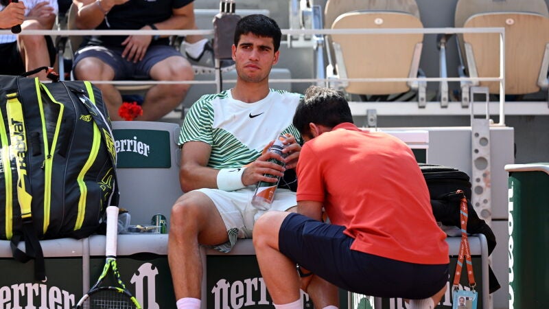 Una maldita lesión, sí, otra vez una lesión, nos ha impedido disfrutar del que muchos calificaban como el mejor partido del año. Carlos Alcaraz terminó lesionado el partido de semifinales de Roland Garros tras sentir una molestia física a comienzos del tercer set. El murciano cayó lesionado en su mejor momento del partido, nada más ganar el segundo parcial y empatar el duelo ante Novak Djokovic, que solo tuvo que mantenerse en pista y meter bolas para acceder a una nueva final de Grand Slam. El domingo buscará ser el tenista más laureado de la historia y establecer un nuevo récord de Grand Slams con 23.