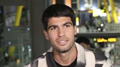 Carlos Alcaraz ya está de vuelta en España. Tras hacer historia al convertirse en el tenista más joven en ganar los cuatro Grand Slam, el murciano aterrizó a primera hora de este martes en el aeropuerto Adolfo Suárez Madrid-Barajas. El murciano atendió a los medios con su habitual cercanía y una sonrisa constante.