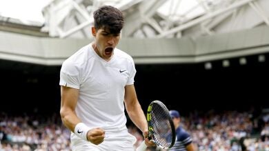 Alcaraz ha tenido flashbacks sobre su victoria el año pasado sobre la hierba londinense: "Al principio no quería pensarlo, pero cuando he vuelto, entrenando y reencontrarme con los campañeros sí que me vuelven los sentimientos y los recuerdos de lo que viví aquí el año pasado".