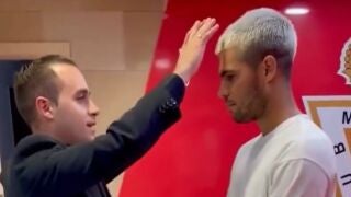 Carlitos fue bendecido en la previa por Miguel Tovar, que curiosamente es murciano y desde hace meses también el sacerdote más joven de España. Ambos se encontraron en la previa del partido copero en el estadio Enrique Roca de Murcia (la histórica Nueva Condomina) y, tal y como cuenta el propio Tovar, mantuvieron una conversación y después este se ofreció a bendecir a la estrella del tenis mundial.