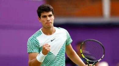 Pocos podían pronosticar hace una semana que Carlos Alcaraz jugaría este domingo la final del torneo de Queen's, la primera de su carrera y la sexta del curso. El murciano llegaba a la hierba de Londres tras la dolorosa derrota ante Djokovic en Roland Garros y sin apenas partidos sobre esta superficie en su historial en la ATP. Pero el jugador de El Palmar amenaza con abandonar el Queen's Club con el primer titulo de su carrera sobre hierba y con el número 1 en el bolsillo a una semana de Wimbledon.
