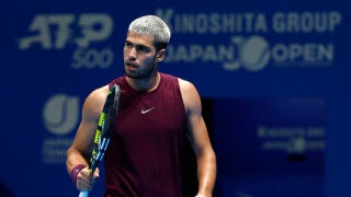 El murciano solventa ante Sebastián Báez (6-4 y 6-2) un accidentado estreno en el ATP500 de Tokio, con torcedura de tobillo en el primer set. Alcaraz se medirá en octavos de final al belga Zizou Bergs.